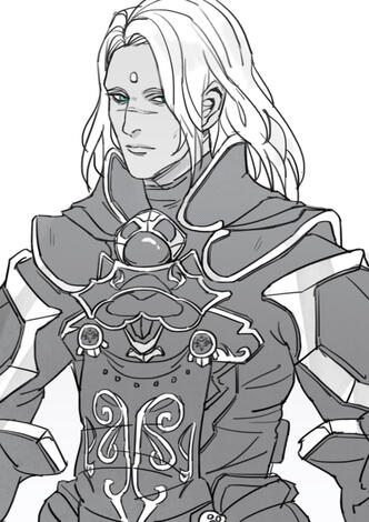 Describing his physical features would be incomplete without mention of his icy sea-green gaze, the pearlescent third eye set high on his brow or the horizontal scar across his nose that nearly bisects his visage into upper and lower halves. Still, his defining feature has always been his nigh-white flaxen locks. While not uncommon for Garleans to have such a particular colored mane, it is unusual to see on someone with his complexion and features. At a point in his life, he had committed to close-cropping or even dying his hair to conceal this genetic oddity. Eventually, he would come to wear it openly.